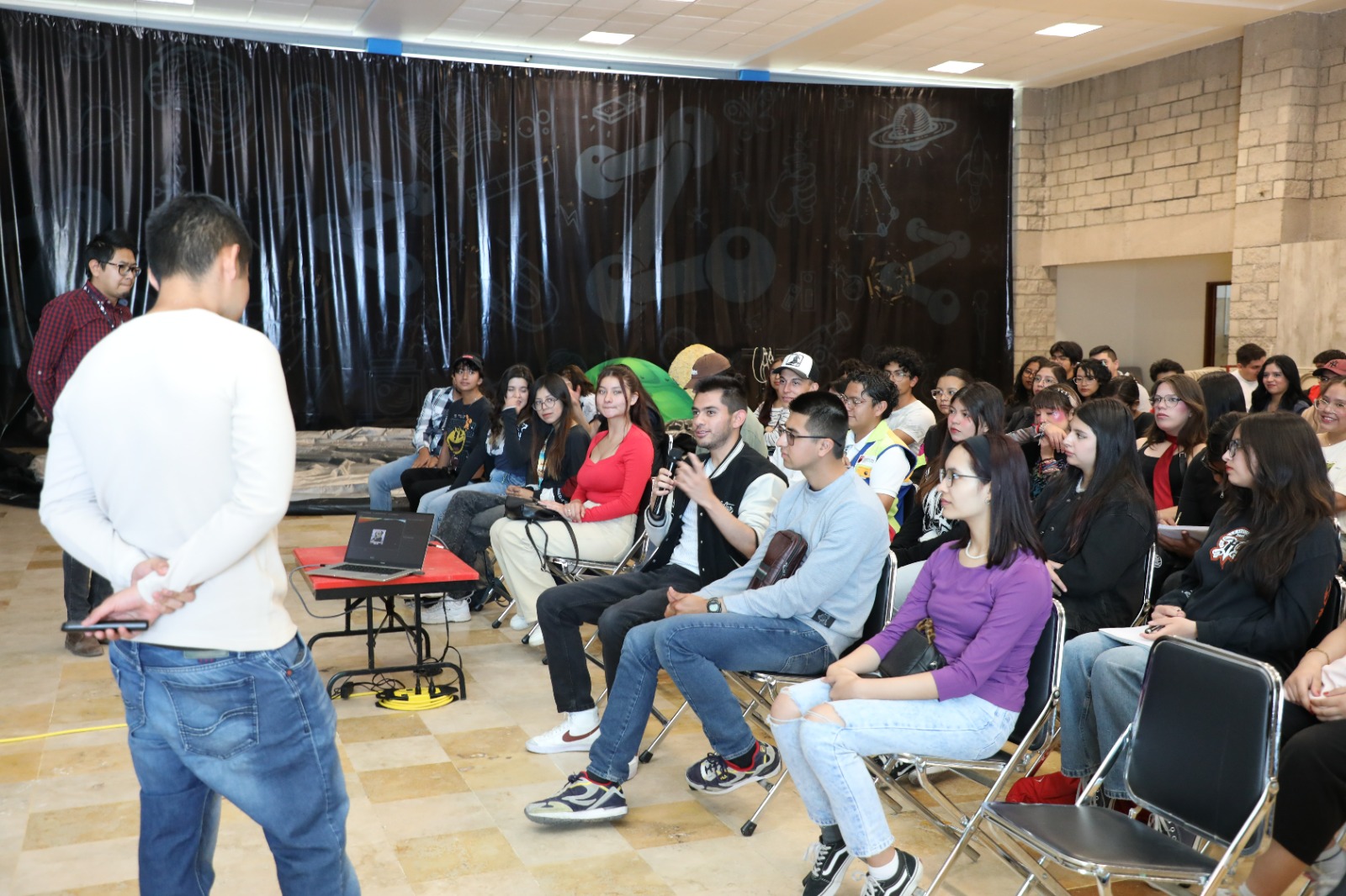 González Loera habló a los asistentes de conceptos como cuantización de la energía, las leyes de física, modelos atómicos, les describió la Teoría cuántica y sobre los roles de científicos como Max Planck, Niels Bohr, Albert Einstein, entre otros, en este tema.