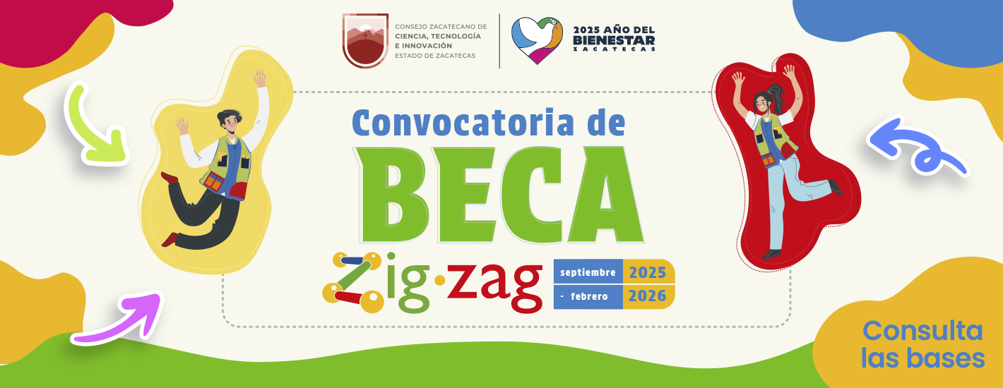 El Consejo Zacatecano de Ciencia, Tecnología e Innovación (COZCyT). a través del Centro Interactivo de Ciencia y Tecnología de Zacatecas Zigzag, con el propósito de apoyar a la juventud y promover la divulgación de la ciencia, tecnología e innovación en el estado, convoca a estudiantes entre 16 y 23 años de edad que estén cursando el nivel medio superior o superior y que tengan disponibilidad en el turno matutino, a solicitar una beca y participar en un programa de formación y servicio en divulgación de ciencia.