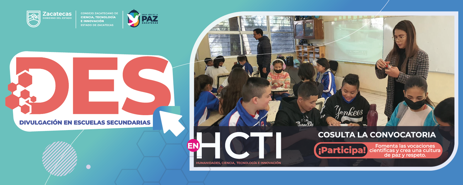 La Divulgación de las HCTI en escuelas de Educación Secundaria consiste en la vinculación entre las y los investigadores, académicos y especialistas con estudiantes de escuelas secundarias, con la intención de que, a través de una visita a su institución, compartan sus conocimientos e inquietudes mediante diversas actividades. Con el objetivo de fomentar vocaciones científicas y trabajar por una cultura de paz y respeto.