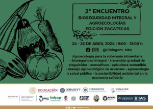 24 de abril de 2024. La Dirección de Innovación en conjunto con el CONAHCYT organizó el Segundo Encuentro de Bioseguridad Integral y Agroecologías, Edición Zacatecas, para reflexionar sobre cómo orientar la investigación, considerando los aspectos sociales, culturales y económicos, para desarrollar biotecnologías, así como para explorar el potencial de las agroecologías y construir sistemas alimentarios más justos, sanos y sustentables, que aprovechen los conocimientos tradicionales y promuevan la soberanía alimentaria. Más información |