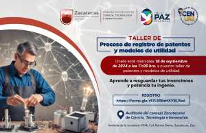 18 septiembre 2024. Taller de proceso de registro de patentes y modelos de utilidad. Organizado por el COZCyT y el Centro de Emprendimiento y de Negocios UAZ, impartido por personal del Instituto Mexicano de la Propiedad Industrial (IMPI). Más información |