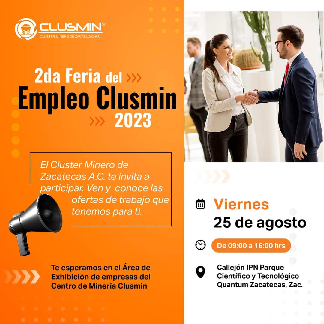 - Las y los buscadores de trabajo deberán acudir el viernes 25 de agosto, de 9:00 a 16:00 horas, al edificio del Clúster Minero de Zacatecas