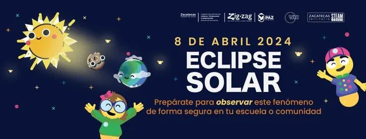 Zacatecas, Zac., 21 de marzo de 2024.- Con el objetivo de promover una observación segura y el disfrute pleno del eclipse solar del 8 de abril de 2024, el Consejo Zacatecano de Ciencia, Tecnología e Innovación (Cozcyt) invita a la capacitación especial, que se llevará a cabo el próximo sábado 23 de marzo, en las instalaciones del Zigzag.